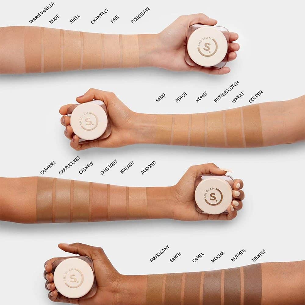 بالم کرم پودر فول کاور شیگلم SHEGLAM مدل Full Coverage Foundation Balm رنگ shell دارای فرمول انحصاری بدون چربی است و از سیستم امولسیونی روغن در آب استفاده میکند که لایه ای نازک روی پوست ایجاد میکند. فرمول آنتی اکسیدانی با ماندگاری بالا این محصول دارای یک پودر از پیش مخلوط شده در اندازه 10 تا 25 میکرون است که با استفاده از فناوری اسید آمینه برای مقاومت در برابر چربی و تعریق تهیه شده است و روی پوست کدر نمیشود.