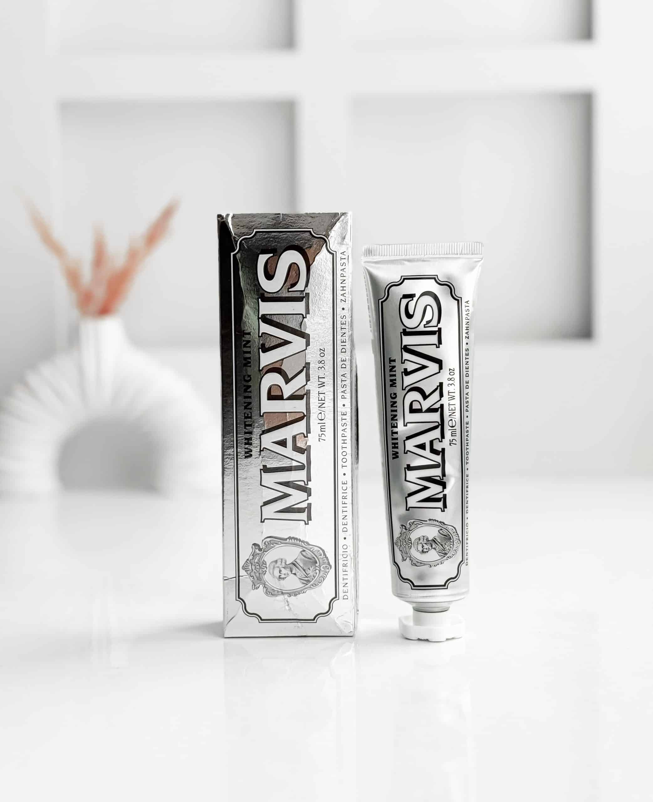 - خمیر دندان سفید کننده Marvis که با دقت و وسواس بسیار ساخته شده است. برای استفاده روزانه مناسب است و برای دندان ها و لثه ها ملایم است.