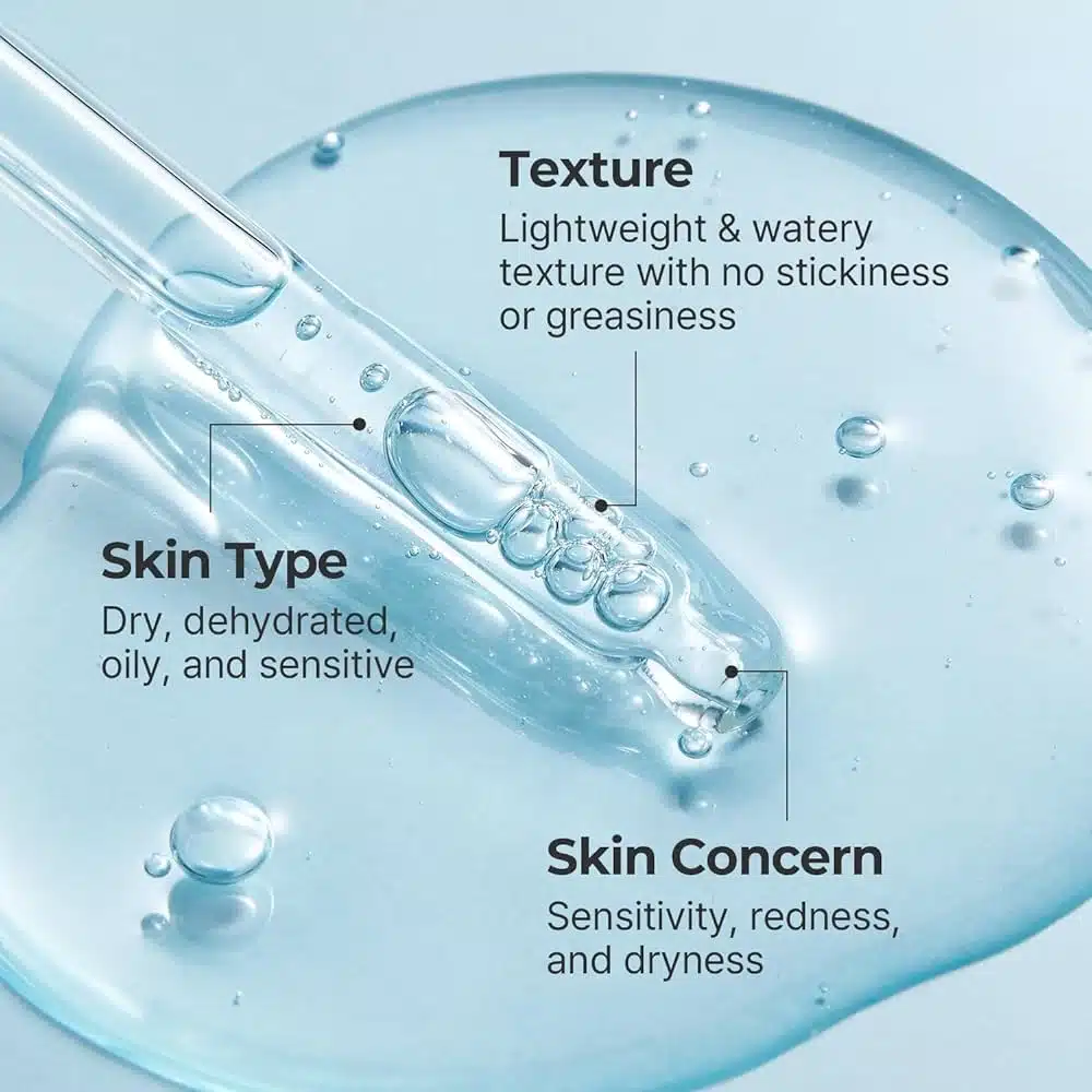 آبرسان، تسکین دهنده، ضد التهاب و قرمزی، ترمیم کننده، ضد جوش، مرطوب کننده، ضد چین و چروک، کنترل منافذ و چربی پوست، روشن کننده، تقویت کننده