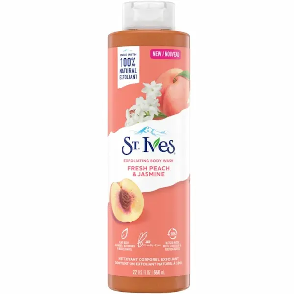 شامپو بدن هلو و گل یاس سنت ایوز St Ives Peach Jasmine حاوی عصاره های طبیعی برای پاک کنندگی، درخشان کنندگی و احساس پوستی لطیف و خوشبو می باشد. شامپو بدن سینت ایوز حاوی عصاره هلوی تازه غنی از ویتامین ها و عصاره گل یاس با رایحه دلپذیر است. این ترکیب همچنین حاوی پودر پوست گردو به عنوان ذرات ساینده ملایم برای پاک کنندگی و درخشندگی پوست تازه است و به همراه رایحه دلپذیر محصولی دوشت داشتنی را در برنامه شستشو و مراقبت روزانه پوست پدید آورده است.
