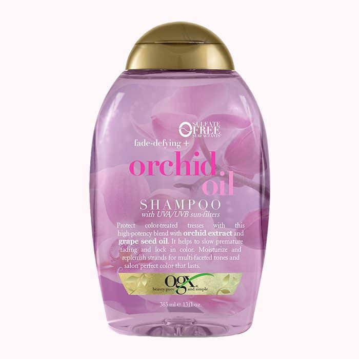 شامپو موی رنگ شده روغن ارکیده او جی ایکس با عصاره ارکیده و روغن هسته انگور به کاهش محو شدن زودرس و ماندگاری رنگ مو کمک میکند.