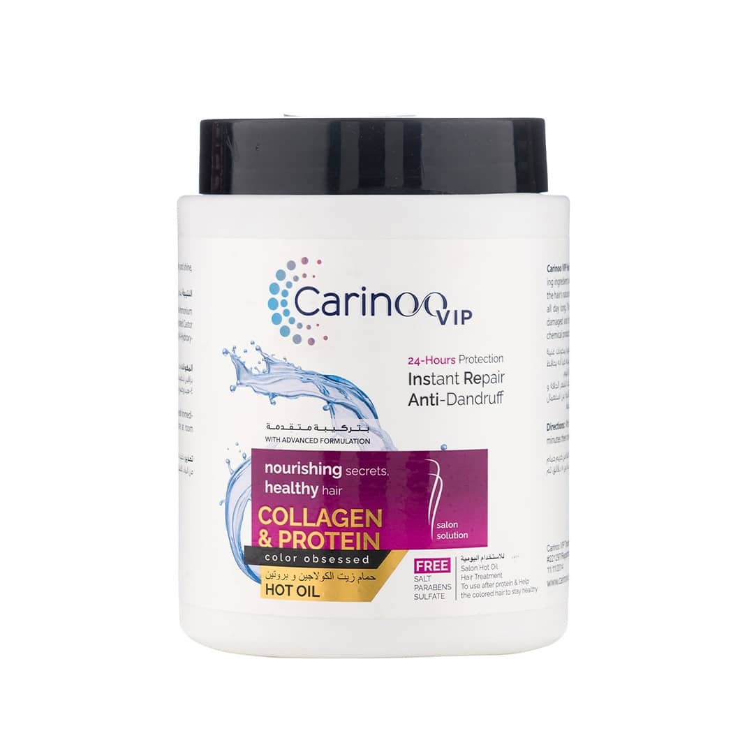 معرفی ماسک مو کلاژن و پروتین 1000میل کارینو وی آی پی: ماسک موها حاوی عوامل مرطوب کننده و تغذیه کنندهای هستند که به موها رطوبت و تغذیه میبخشند.