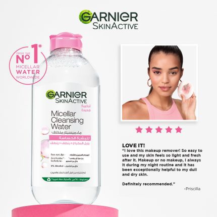 ویژگیهای میسلار واتر گارنیر صورتی برای پوست حساس 400 میلی لیتر