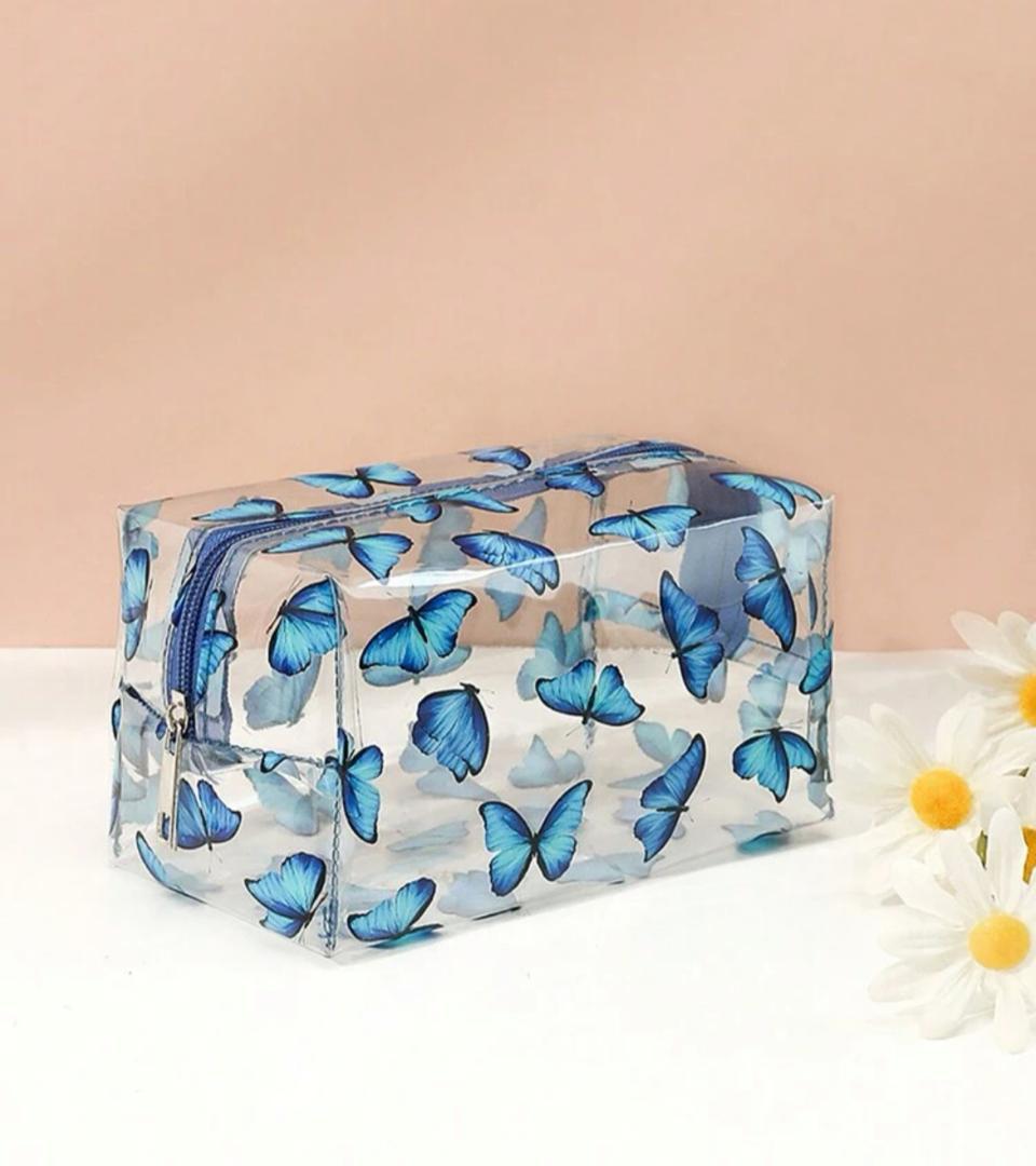 کیف لوازم آرایشی رنگ شیشه ای طرح پروانه