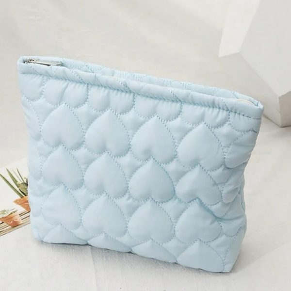 کیف لوازم آرایشی رنگ آبی آسمانی پارچه ای طرح قلب