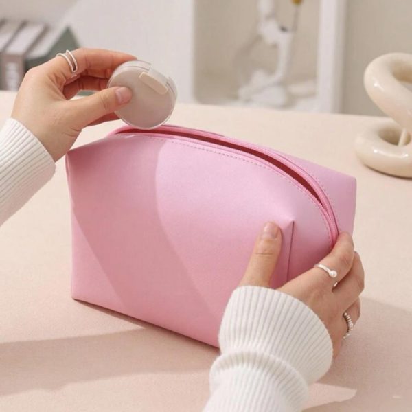 کیف لوازم آرایشی رنگ گلبهی طرح برجسته